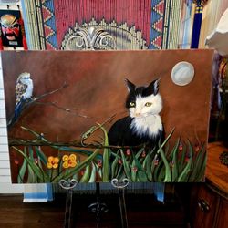 Vinrage Oil On Canvas Painting " Tuxedo Cat" Signed by the Artist Dated 24"×36"$35Boca Raton, FL