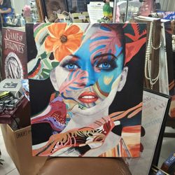 "Miele" Modern Pop-Art Style Canvas Print Of Female Figure Decorated With Tropical Flowers & Leaves 24" X 20" In Mint Condition $25Fort Lauderdale, FL