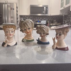 1950’s classic Glamour Girl Vase Heads set of 4$100Laud By Sea, FL