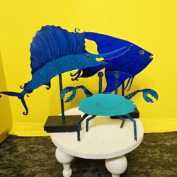 Set of 3 CLAUDINE BUELL Enamel Torch Cut Steel Nautical Fish Crab Sculptures $69Boca Raton, FL