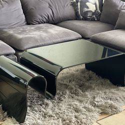 Vintage 1980s Undulating Wavy Glass Coffee Table Black Antique Accents$250Miami, FL