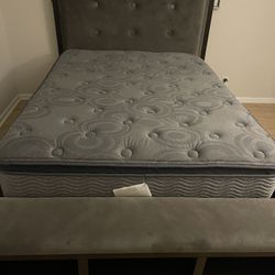 Brand queen upholstered bed frame with used Sealy PosturePedic 11” mattress$235Miami, FL