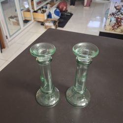 Set Of 2 Stylish Round Green Tinted Glass Taper Candle Holders 7" Tall $7Fort Lauderdale, FL