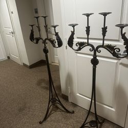 Vintage Wrought Iron Floor Candelabra – Matching Pair – Ornate Design – 5 Candle Holders Each$250Hillsboro Beach, FL