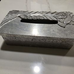 Rectangular tissue box cover made of sand-cast aluminum by Arthur Court, featuring an embossed design of fish and floral elements 16" Hx6" Wx3"S$8Fort Lauderdale, FL