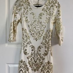 Stunning White And Gold Figure Flattering Womenโs Dress Size S Retail $75$20Sunny Isles Beach, FL