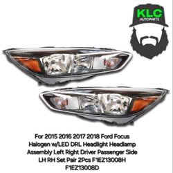 For 2015 2016 2017 2018 Ford Focus Halogen w/LED DRL Headlight Headlamp Assembly Left Right Driver Passenger Side LH RH Set Pair 2Pcs F1EZ13008H F1EZ1$228Medley, FL