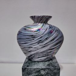 Vintage Iridescent Hues on Silver & Black Swirl Perfume Bottle