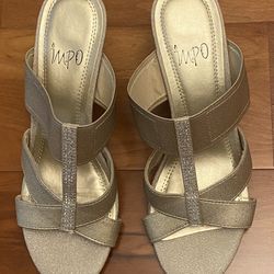 IMPO Glittery Champagne Wedge Sandals, Size 5.5$15Oakland Park, FL
