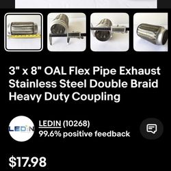 3" Exhaust Flex Pipe 3" x 8" Heavy Duty Stainless Steel 8" OAL - RK7522$16Callaway, FL