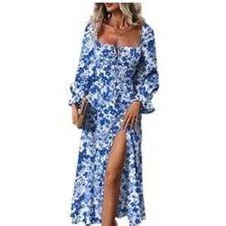 Blue Floral Midi Dress – Square Neck Puff Sleeve (Size XL/$43 Retail)$20Largo, FL