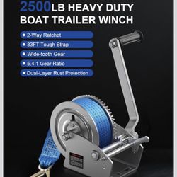 Heavy Duty Boat Trailer Winch with Strap, 2-Way Ratchet Efficient Gear Ratio, Enhanced Wider Gear, Ratchet Switch and Handle, Hand Winch for Boat, Tra$60Lakeland, FL