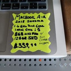 MacBook Air 2018 Sonoma 8gb/128gb I5 W Boxand Charger $339Seminole, FL