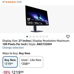 Alienware gaming monitor 27inch 180hz$200Tampa, FL