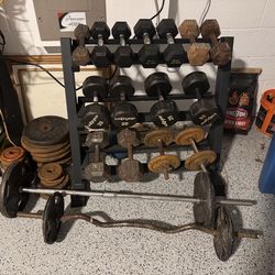 Home Gym Bundle - 350 Pounds of Weights, Barbell, Curl Bar, And Weight Tree$450Dover, FL