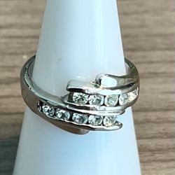Elegant silver-tone ring with sparkling clear crystals. Features a wave-style design for modern appeal. Perfect as a statement or everyday accessory. $25Land O' Lakes, FL