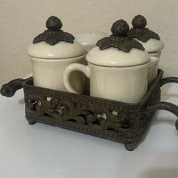 Decorative Creamer, Sugar Bowl, Condiment Jar With Metal Carrying Tray$15Oldsmar, FL
