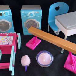 18 inch Doll Toys- Gymnastics, Desk, Washer & Dryer, Cotton Candy Maker- Used- LOTN$30Tampa, FL