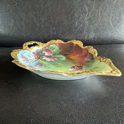 Limoges"Coronet"France Hand-Painted Porcelain-Peony Motif-Gold Gilded Edge-Leaf Shape Trinket Dish-1s. "Edwardian Era" (1/1915)$60Zephyrhills, FL
