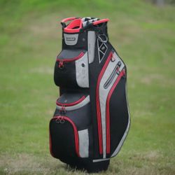 14-Way Golf Stand Bag With Cooler & Shoe Pocket & Rain Hood (Black/White/Red)$130Pinellas Park, FL