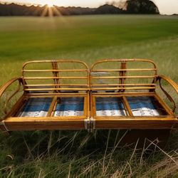 Vintage 3 Strand Rattan Bamboo 2 Pc Sectional Sofa Paul Frankl Era Mid Century Barkcloth Cushions$350St. Petersburg, FL