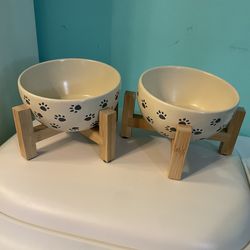 Ceramic cat food bowls with wooden holders$25Tampa, FL