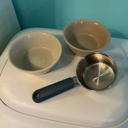Ceramic cat food bowls and metal food scoop$15Tampa, FL