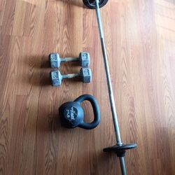 Two dumbbell handles and standard 1” weights plates $30Tampa, FL