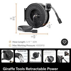 Giraffe Retractable Power Washer Hose 4000psi 1/4 New Condition $120Pompano Beach, FL