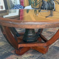 Solid wood wagon, wheel glass, top coffee table$450Lake Worth, FL