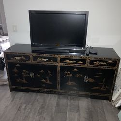 Vintage Chinese Black Lacquer Chinoiserie Sideboard / TV Console / Credenza - TV INCLUDED$400Boca Raton, FL