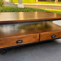 Large Industrial Coffee Table w/ Drawers & Wheels Restoration Hardware Style$375Boca Raton, FL