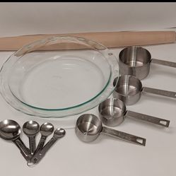 Pyrex 9.5" glass deep dish fluted pie plate rolling pin measuring spoons cups $15 FIRM$15Boca Raton, FL
