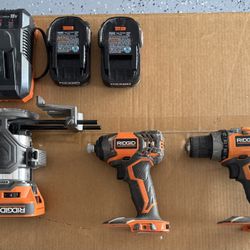 RIDGID 18V Brushless Tool Set β Drill, Impact, Router + Batteries & Charger$275Riviera Beach, FL