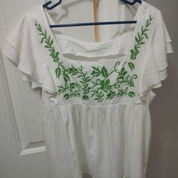 White blouse featuring green leaf embroidery and ruffled sleeve Shein (XL)$12Lake Worth, FL