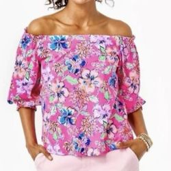 Lilly Pulitzer lessa off the shoulder top size L in Pink Isle Bud $42Boca Raton, FL