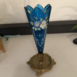 Vintage Bohemian Cobalt Blue Glass Vase – Hand-Painted Enamel & Brass Base$55Pompano Beach, FL