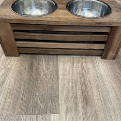 Rustic Wooden Elevated Dog or Cat Feeding Bowl Stand with Two Stainless Steel Bowls! 17x10x5in$20West Palm Beach, FL