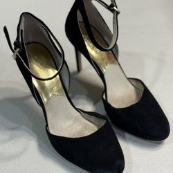 Stylish Michael Kors Georgia suede ankle-strap pump heels in black with gold accents, women’s size 7.5$25Wellington, FL
