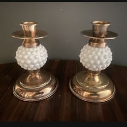 Pair Of Vintage Hobnail Milk glass Candle Holders. $45Lake Worth, FL