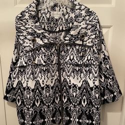 Erin London XL Jacket Black White Ikat Print Zip Up Convertible Collar Pockets$34Boca Raton, FL