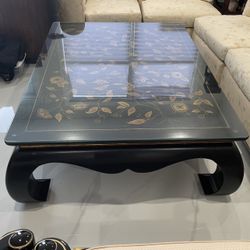 Oriental Designer Long Coffee Table With A Bottom Shelf & Glass Top Protector Black&gold Trim Asking $400. or Best Offer$380Delray Beach, FL