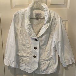 LAL Live a Little White Ruffle Denim Jacket XL Stretch Cotton Shacket Blazer$24Boca Raton, FL