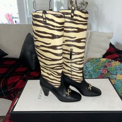 Gucci Zumi Tiger Print Calf Hair Interlocking G Horsebit Knee High Riding Boots$2,000Pompano Beach, FL