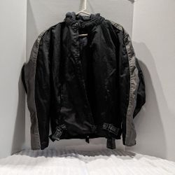 NEXGEN Insulated Motorcycle Jacket Black w/gray stripe Zip hooded Liner Mesh L$35Pompano Beach, FL