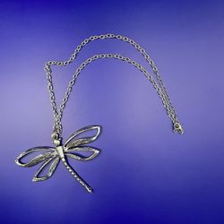 Large Silver Dragonfly Pendant Necklace Statement Jewelry 20" Chain Boho$21Boca Raton, FL