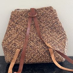 woven straw tote bag with leather handles. $10Palm Beach, FL