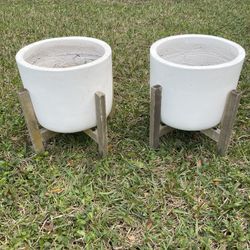 Ceramic Planter Pots Heavy Duty Set of (2)with Raised Wood Stands $60West Palm Beach, FL