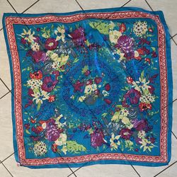 100% Pure Silk Scarf India Large 38" Square Floral Turquoise Teal Blue Red$24Boca Raton, FL