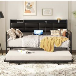 Daybed with Trundle, Twin Day Bed with Upholstered Headboard and Charging Station, Metal Twin Sofa Bed Frame Pop-up Trundle Bed$80Wellington, FL